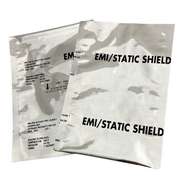 For ESD/EMI barrier protection, we offer mil-spec bags meeting pouch spec MIL-DTL-117H Type I Class F Style I. These bags are converted from CADPAK ESD MIL-PRF-81705 Type I Class I roll stock and are suitable for vacuum packaging sensitive electronic components and devices.