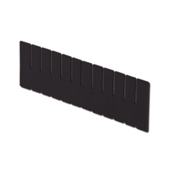 Dividers slide easily into molded “no guess” divider grids. Each divider slot is numbered to facilitate adding or removing dividers as your requirements change. Vertical Dividers will help increase product protection and create a “custom size” cell partition to fit more parts per tote and prevent part migration. Each tote box has a maximum number of long dividers and short dividers allowed. The dividers slide in a groove that is dividable on 1.25” centers. This allows you to create custom cell sizes as small as 1.25” x 1.25”