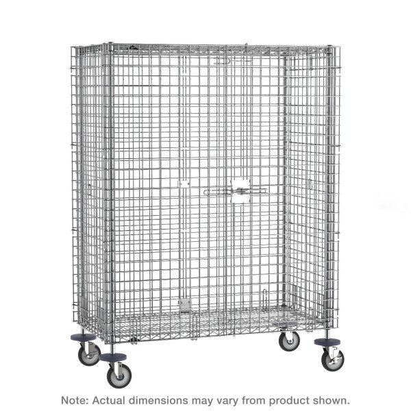 Keep sensitive items safe from loss or pilferage. Heavy-gauge open wire construction keeps contents visible at all times, making it easy to check inventory. Each door opens 270 degrees and can be secured along the sides of the unit. Shipped knocked down to save on freight costs. Assembles in minutes. Units include two chrome Super Erecta shelves which must be used as the top and bottom shelves of the unit. Add an optional intermediate shelf for increased storage capabilities. Includes four 5" diameter casters with plated finish and polyurethane tread (two swivel and two swivel with brakes).